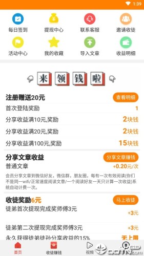 小金桔,达中科技于7月18日推出的一款分享文章赚钱的app,