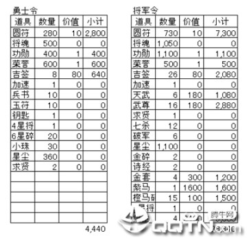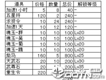 勇士令一共280圆符,将军令一共730圆符,合计只有1010,要买下全部道具显然是不购的。初期不要乱买,紫马在25级解锁、重生令在50级解锁,解锁后才可以看到它们的数量限制(上表中已经标出解锁后的数量限制,感谢土豪提供数据)。这两个应该是最重要的道具了。没有使用的圆符应该可以保留到下一个档期。