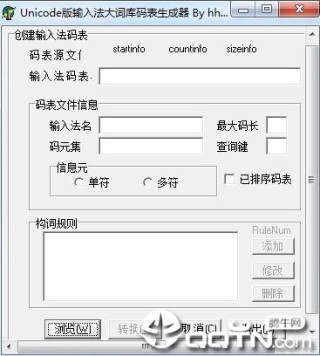 2、运行 大词库码表生成器.exe,点击“浏览”,选择源文件后,点“转换”,完成后“退出”,