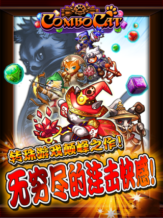 《Combo Cat》是一款融合各种文化的一款游戏,包罗万象诸如:西洋、幻想、中国、日本、猫与龙的各类背景设定。这款游戏希望带给玩家开心冒险的感受,透过轻松舒压、RPG类型的游戏体验,让喜好转珠类宝石消去、爱猫族群的玩家们,可以在这款游戏中找到游戏的乐趣。