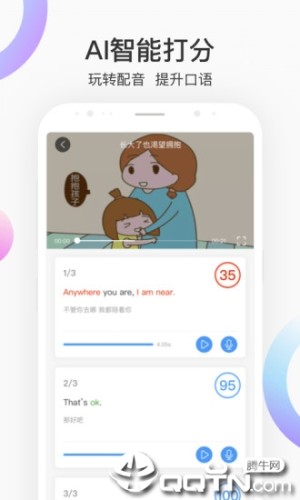 【会打分】内有顶尖的语音识别技术,给你每一句的配音打分,纠正你的发音,将你的英语提升到母语水平