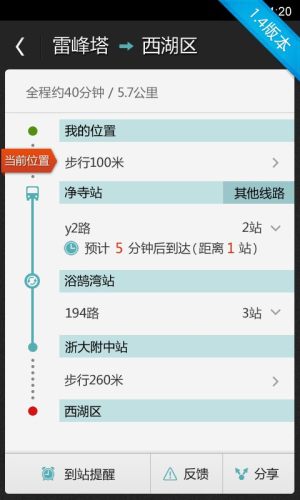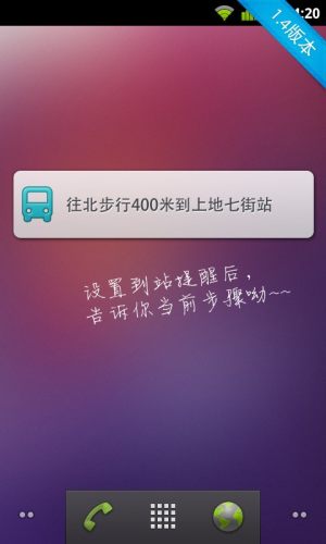 1.可以在手机桌面上添加小工具啦!在桌面设置小工具后,可以方便快捷地查询公交方案。设置到站提醒后,小工具上会告诉你当前步骤哟~!