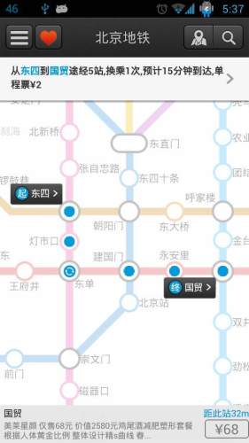 无论是车程还是车站资料,最快只需点击2次即可完成 选站最快速:独创的GPS自动定位、线路图直接点击、站名地标搜索 离线车站交互式地图,信息最完整:除了调用标准地图服务外,提供独家出口地标及街道离线地图! 最早/最晚出发时间:独创智能计算您可到达目的站的最早/最晚地铁搭乘时间