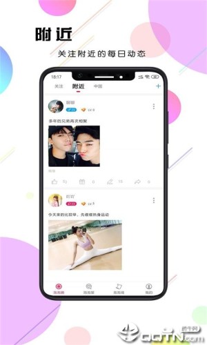 包括附近动态、陌生人聊天等模块,建立了开放、简洁的社交方式。