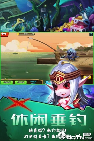 3、休闲钓鱼,独特的社交玩法,给英雄战斗更多私人空间,约朋友垂钓。