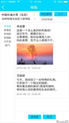 结识同校异校老乡同学,即时查看学校学院通知、接收校园活动信息;