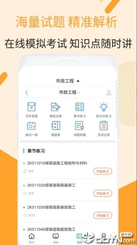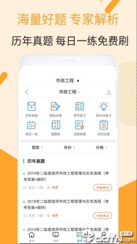 二建市政工程视频课件是一款专门为二建市政工程考试开发的考试助手型软件,它能为我们提供各种各样题型的题目练习,以此来巩固我们的知识点,还有历年的考试真题试卷给我们练习,增加我们对考试的熟悉程度。二建市政工程视频课件app你值得拥有!