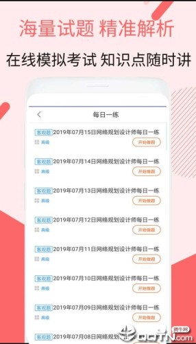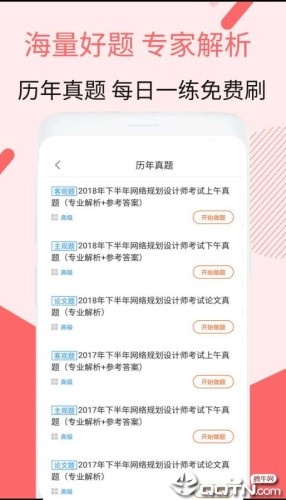 网络规划设计师考试是一款专门为网络规划设计师考试开发的考试助手型软件,它能为我们提供各种各样题型的题目练习,以此来巩固我们的知识点,还有历年的考试真题试卷给我们练习,增加我们对考试的熟悉程度。网络规划设计师考试app你值得拥有!