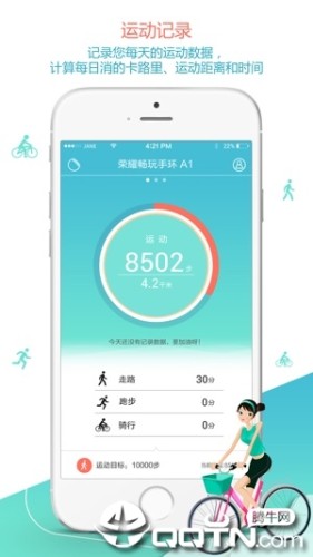 1)记录每天的运动步数,准确计算每日消耗的卡路里、运动距离和时间。