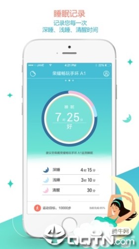 2)记录每天的睡眠情况,告知您每天的深睡时间、清新次数和浅睡时间。