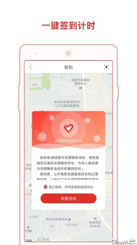 志愿者使用签到签退功能,记录参加公益活动时长,此时长记录将作为志愿服务活动参加的有效证明。