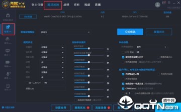 在任务栏上点击游戏加加,随后选择吃鸡++,即可进入吃鸡优化的配置界面,进入后,PUBG加加++绝地求生助手会自动读取玩家的CPU,内存,显卡等信息。