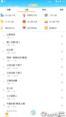 用户可以在这里为孩子下载多种儿歌,还有英语早教小故事帮助孩子开阔视野,软件还支持语音阅读,感谢的用户就快来下载使用吧。