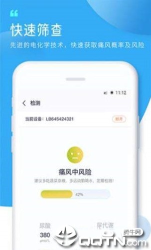 知痛风是一款非常专业的健康管理应用软件,利用先进的电化学技术,快速获取痛风概率及风险,
