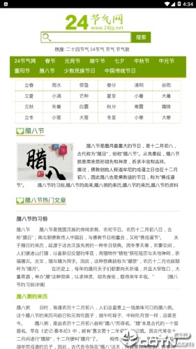 24节气网app是一款非常实用的手机节日节气查询软件,软件涵盖了24节气的所有百科知识,详情解析非常清楚,