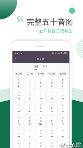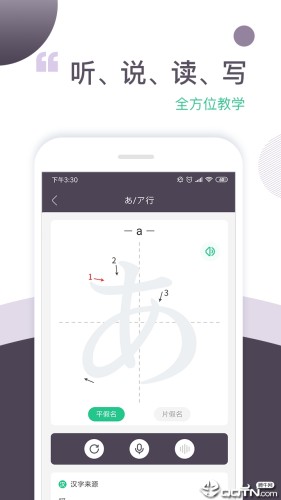 通过发音、跟读、书写练习,全方位掌握每个假名的读法,写法。