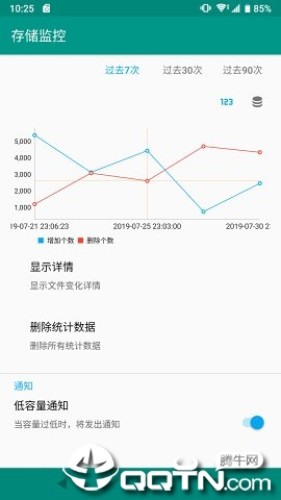 2、数据超级的详细,统计增删文件数量、统计增删文件大小、历史记录详情查看、低容量预警等。
