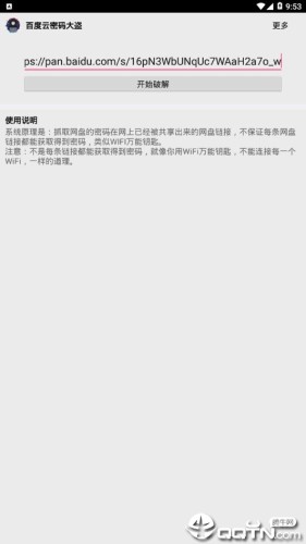 百度云密码查看器采用收集网络密码进行网盘密码破解,原理如同wif万能钥匙,词库一直在更新,软件会越来越强大!