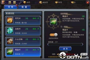 可以进阶的技能到达一定等级即可开启,需要消耗该技能的进阶书才能够进阶。