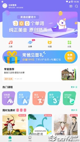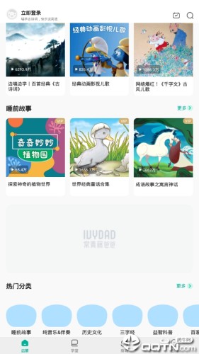 常青藤爸爸早教里面有丰富的早教内容。针对幼儿提供优质的早教资源,提高孩子的学习能力,认知能力。丰富的绘本激发孩子的阅读乐趣,让孩子爱上学习。 还有丰富的育儿知识,让父母学习更科学的教育方式。