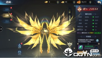 翅膀和坐骑不同的是升阶后提升基础属性和神圣攻击和最终免伤。神圣攻击即为无视防御的伤害,最终免伤即为最终结算时的伤害减免。例如当对方攻击为1000,我方防御为500,减伤率为50%,最终伤害减免为100时,收到的伤害为