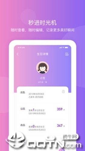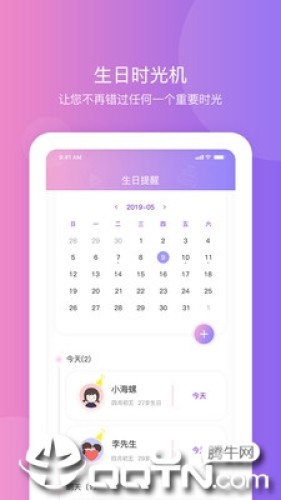 1生日提醒:记录您每一位亲人、爱人、挚友的生日,准确为您提供时间提醒,让您不再错过任何一个送上祝福的重要时刻;