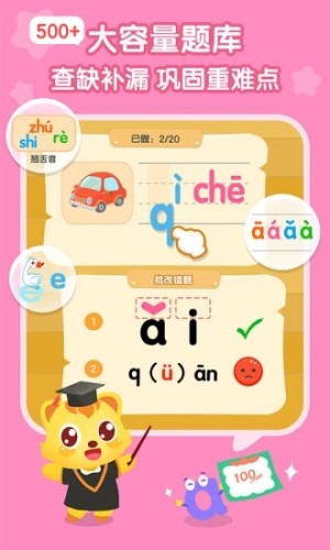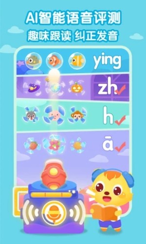 拼音字母音形演绎、拼音声调小车、拼音字母描红、拼音跟读哈哈镜,50+种趣味拼音游戏,寓教于乐,轻松学拼音