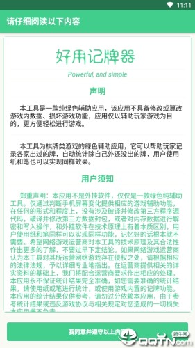 本应用永不保证统计结果完全准确,如您需要准确的统计结果,请使用纸或笔进行统计,或使用游戏内置的记牌功能。