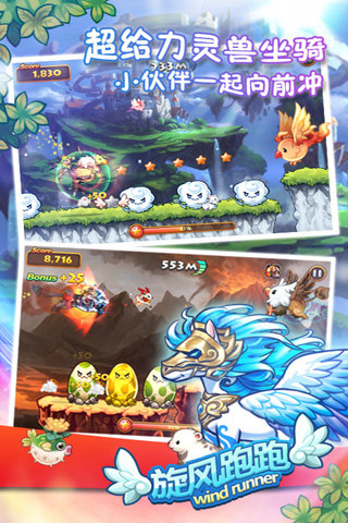 《旋风跑跑》是韩国WeMade公司推出的一款可爱卡通风格的跑酷游戏,本作在韩国市场掀起了一阵跑酷风暴,整个游戏节奏快速,玩法简单刺激。 单手即可控制英雄起跳,奔跑过程中要避开障碍和怪物。用户还可以和好友一起感受游戏的乐趣!和朋友互动比拼成绩高低。 本作一跃成为韩国最火热的游戏,在市场排行榜上排名第一。奇虎360独家代理了《旋风跑跑》中国版的运营,游戏将汉化为中文版,并添加符合中国习惯的社交元素。