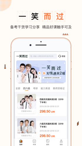 一笑而过APP应用是一款为中国百万大学生用户提供四六级、考研、英语学习、专四专八的备考辅导平台。