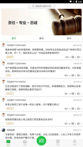 · 主要功能包括:快速咨询、找律师、图文畅聊、电话咨询、打官司、文书代写、文书审核、律师函、预约律师……多种场景满足你的各类法律咨询!