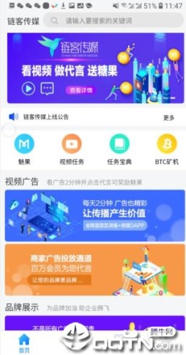 链客传媒app是一款区块链传媒任务悬赏平台,平台以全民代言为理念,用户可以刷视频,看广告,做代言,赚魅果,玩法丰富,感兴趣的朋友可以前来下载使用。