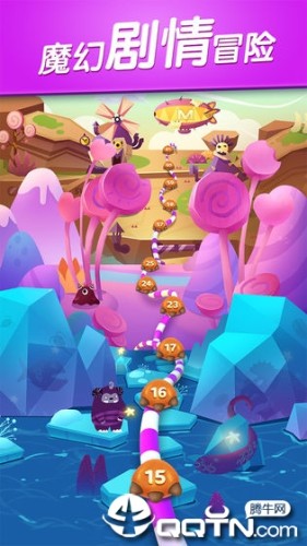 2. 独创的怪兽辅助玩法,消除糖果来为怪兽充能;