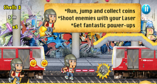 跑,跳,收集金币并且用你的激光武器朝敌人射击。