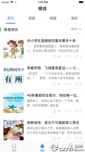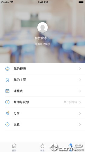 主要包括互动、精选、资源等功能,互动提供家校沟通解决方案,精选提供海南教育相关新闻、动态;