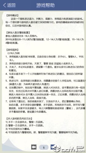 好人方以投票为手段投死杀手获取最后胜利,杀手方隐匿于好人中间,靠夜晚杀人及投票消灭好人方成员为获胜手段。