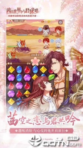 茜色世界中与君咏唱下载是由日本GCREST公司与数字天空联合为女性开发的恋爱和风三消手游。该作以象征日本各时代的7个不同的国家为背景,玩家将与60名历史上名声显著的美男子们邂逅,展开的一场让太阳重新升起的冒险之旅吧。
