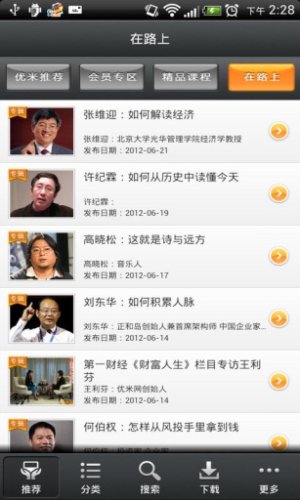 优米视频是优米网为职场、创业人士及大学生打造的随时随地学习充电的学习软件,包含企业管理、投资理财、营销、电商、国学、情感、礼仪等实操性视频,讲师由行业内最具有实战经验的专家名人组成;支持iOS、Android等多平台手机,可下载离线观看;观看行为与优米网自动同步。