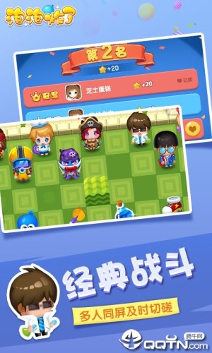 一款以Q版卡通为题材的休闲竞技类手机网络游戏。在游戏中,玩家控制属于自己的游戏人物去放置泡泡。泡泡在经过一段时间后,会爆炸,在上下左右四个方向产生水柱。玩家需要通过放置泡泡,躲避泡泡,打败对手,从而获得游戏的胜利。通过游戏,培养了玩家积极进取和团队协作精神。玩家可以随时随地通过游戏放松身心,同时获得游戏所带来的乐趣。