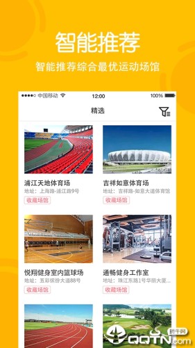 2.根据您的需求,基于LBS定位系统快速为您就近推荐优质体育场馆,让您迅速一键搞定场馆,随时随地给无聊的生活增添乐趣。