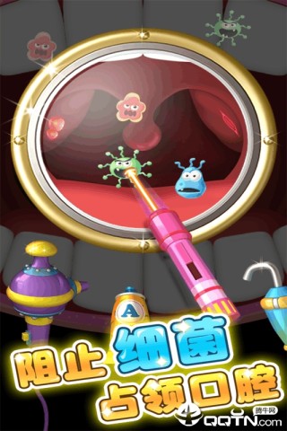 这款手游游戏采用鲜明的卡通画风,为玩家展示了孩子拔牙的全过程。游戏针对孩子们设计,让孩子们在休闲的同时还能了解保护牙齿的重要性,可谓一举两得。