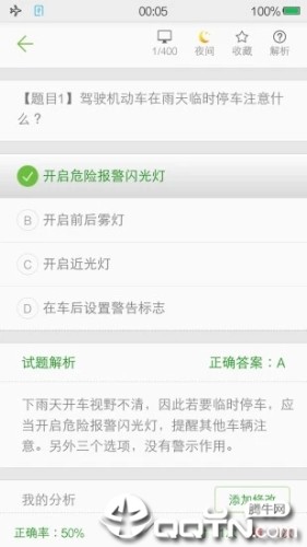 3.人性化设置:字体大小、自动跳转下一题、夜间模式