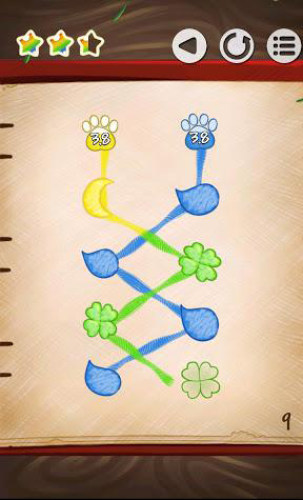 熊猫涂鸦Pandoodle是一款休闲益智类的着色游戏。游戏提供3中颜色的颜料,分别为:红、黄、蓝。在游戏中的熊猫脚掌就是颜料槽,颜料槽上面还会有一个阿拉伯数字,数字代表了槽中颜料的数量,数字越大颜料越多,数字越少颜料就越少。你只需要将正确的颜料通过最简短的路径绘制到相应的图标上面即可过关。