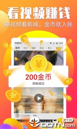 2.每看一条视频都会有金币奖励,金币能兑换现金提现到微信。