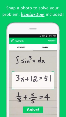 1、只需从您的数学作业中输入一个问题,让Cymath为您解决并显示步骤