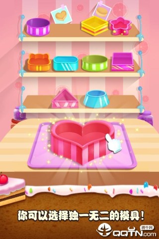 这是一款模拟经营类手游,可爱甜美的游戏画面,玩家可以在这里体验真实的蛋糕制作过程,拥有海量蛋糕模型,你可以打开冰箱,选择需要的食材,并且利用新鲜的食材搅拌,倒入喜欢的形状的模具中,并烘烤出美味的蛋糕,在蛋糕上撒上喜欢的水果,巧克力等,打造更好看的蛋糕。