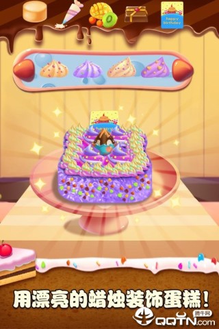2、精致的蛋糕就完成啦!吹掉蜡烛大口吃掉它吧!比比谁吃的最快最干净。真实的操作流畅的过程 多种模具和水果可选择 用心的烘烤细节教你把握 鲜艳的奶油美味的巧克力 制作出最美最可口的蛋糕。