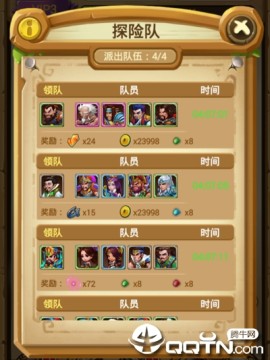 每次探险可选择5名武将进行,时间为10小时每次,结束后可获得相对应的游戏道具。