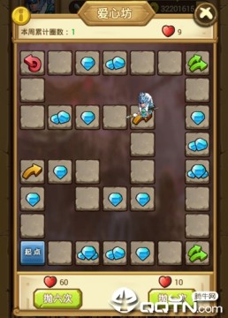 通过探险以及帮助好友灌溉神树获取爱心,用爱心通过骰子玩法获取相对应的钻石奖励。