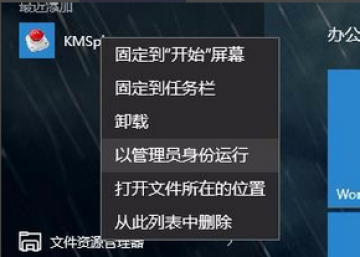 安装完成后,找到这儿KMS的图标,按住shirt键,进行右键,选择以管理员模式打开,并进行破解